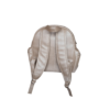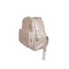 A Mochila Camila é produzida em material sintético, forrada com material impermeável, com bolsos internos, bolsos externos laterais e frontal, alça de mão e mochila, fecho em zíper, tamanho único, bordado na cor prata ou dourado claro, máximo 10 letras.